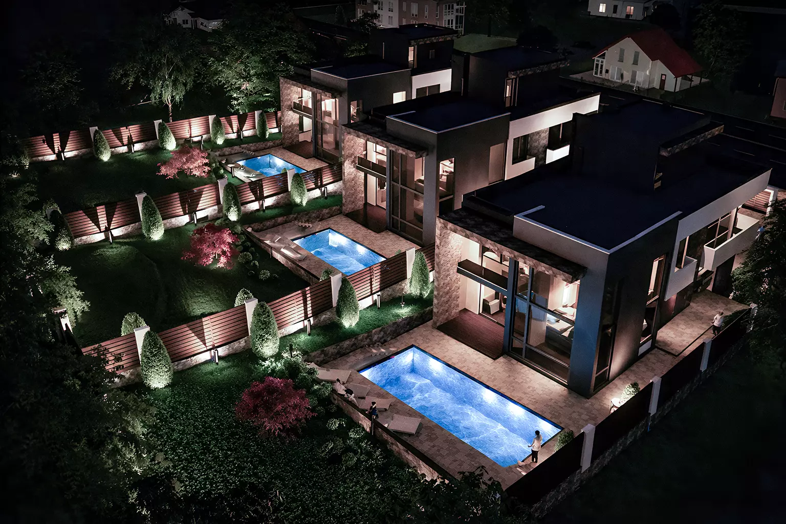 Большой бассейн для всей семьи на территории каждого коттеджа